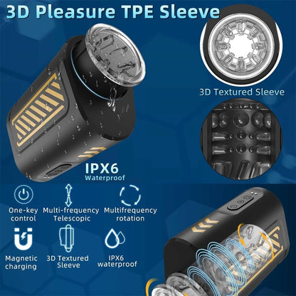 Die 7-stufigen Stoß- und Rotationsmodi dieses automatischen Masturbators für Männer ermöglichen es Ihnen, eine Reihe von Vergnügen zu erkunden, von sanftem Necken bis hin zu harter Stimulation. Mit dem Masturbator für Männer haben Sie die völlige Freiheit, Ihre Grenzen zu überschreiten. Der um 360° drehbare und stoßende Masturbationsbecher für Männer sorgt für unvergleichliche Erregung und Stimulation bei der Masturbation mit dem Penis. Stoßende Sexspielzeuge für Männer bringen Sie zu unvergesslichen Orgasmen direkt in den Sexhimmel!