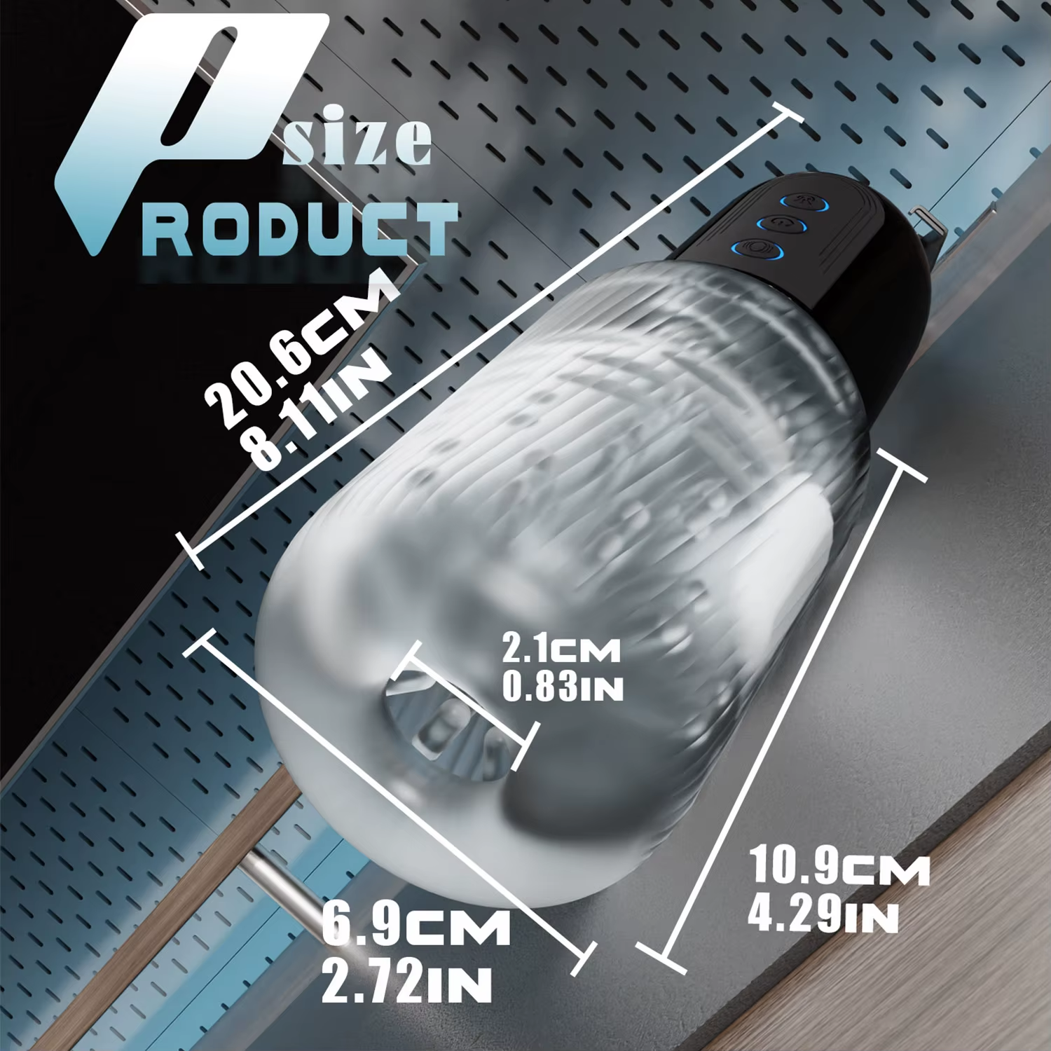 Manueller Druck synchronisiert sich mit tiefem Saugen – Drücken Sie die ultraweiche Hülle, während die Saugkraft aktiv ist, und spüren Sie einen luftdichten Vakuumeffekt, der Sie einschließt – voller, fester und genau dort, wo Sie sein möchten.