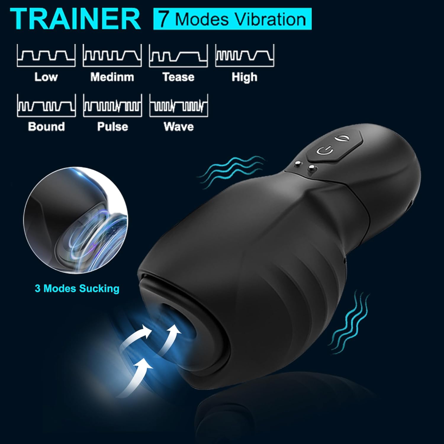Elektrische Penistrainer Stroker Masturbatoren mit 7 Vibrationen und 3 Vakuumsaugern