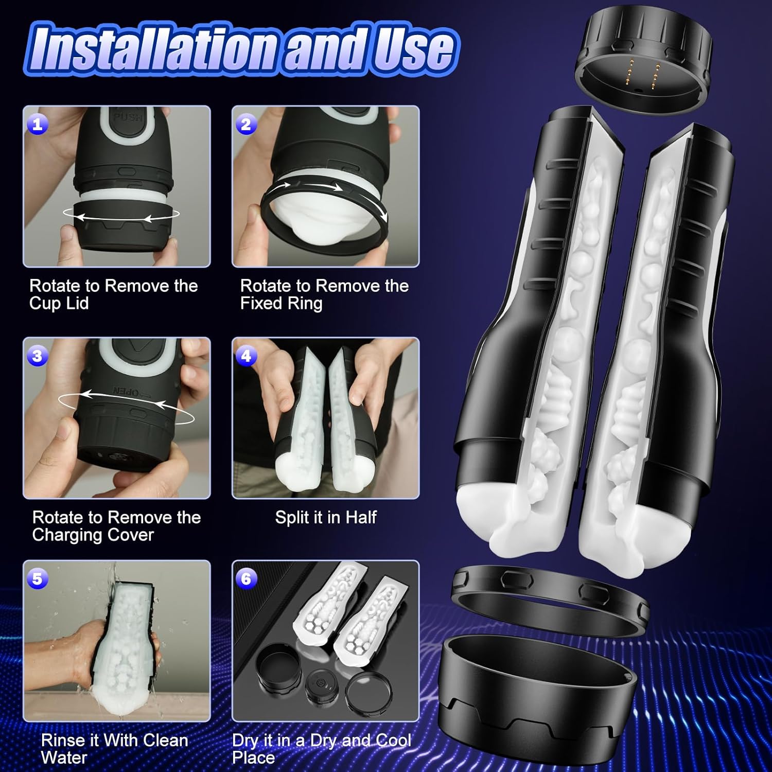 Patentiertes, abnehmbares Design für einfache Reinigung – Das innovative, patentierte Design unseres Masturbators ist ein Highlight. Durch eine leichte Drehung lässt sich dieses Sexspielzeug für Männer ganz einfach in zwei Hälften teilen. Die nahtlose Teilung legt jede Ritze im Innen- und Außengehäuse frei und verhindert so schwer erreichbare Ecken.
