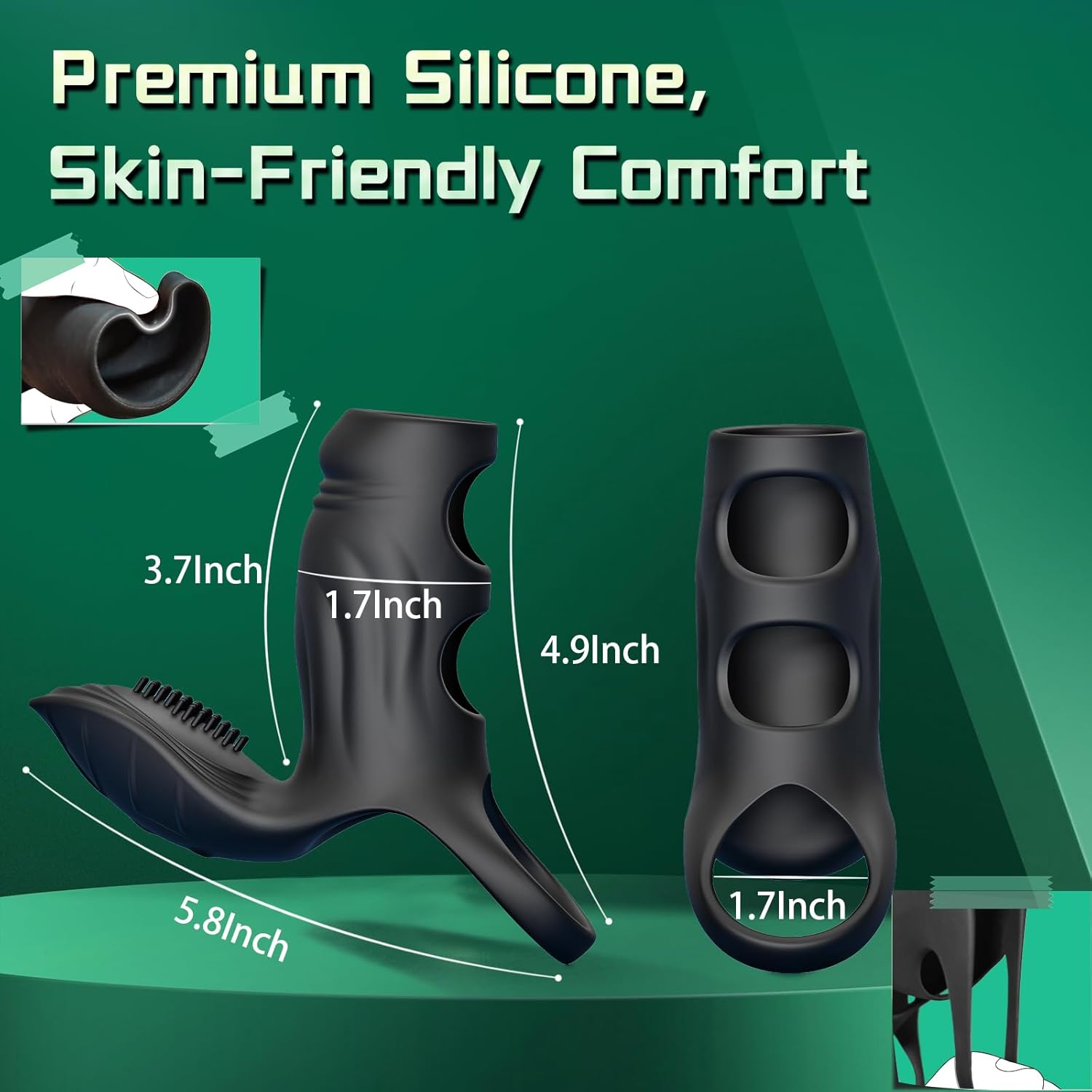 Revolutionäres Penishüllen-Design: Die Penishülle verfügt über zwei Motoren, die gleichzeitig Klitoris (C-Punkt) und G-Punkt stimulieren und mit 10 Vibrationsmodi intensive Empfindungen erzeugen. Das nicht vollständig abdeckende Design der Penishülle macht sie flexibler und an verschiedene Größen anpassbar.