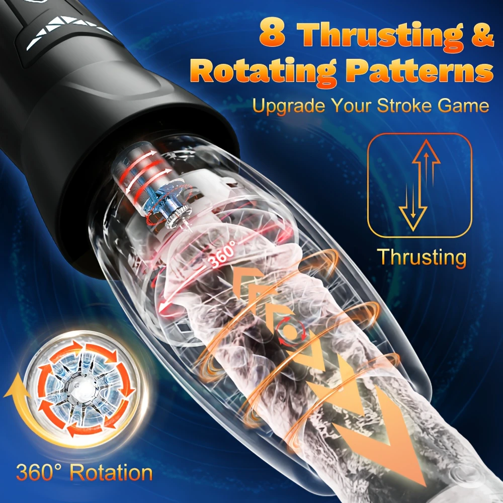 - 【10 vibrierende, 8 stoßende und rotierende Muster】 10 verschiedene Vibrationsmuster, jedes entworfen, um Ihre Sinne zu necken und zu necken. Und es bietet 8 verschiedene Stoß- und Drehmuster, die entworfen wurden, um die Empfindungen echter Intimität nachzuahmen. Er vermittelt mit seiner 360° Drehbewegung ein himmlisches Wirbelwindgefühl. Verwenden Sie dieses Sexspielzeug für Erwachsene, um Ihren Penis zu erziehen, Ihre Erektion zu verbessern und Ihren Genuss während Ihrer Sexspielzeuge und Spiele für Erwachsene zu verlängern.