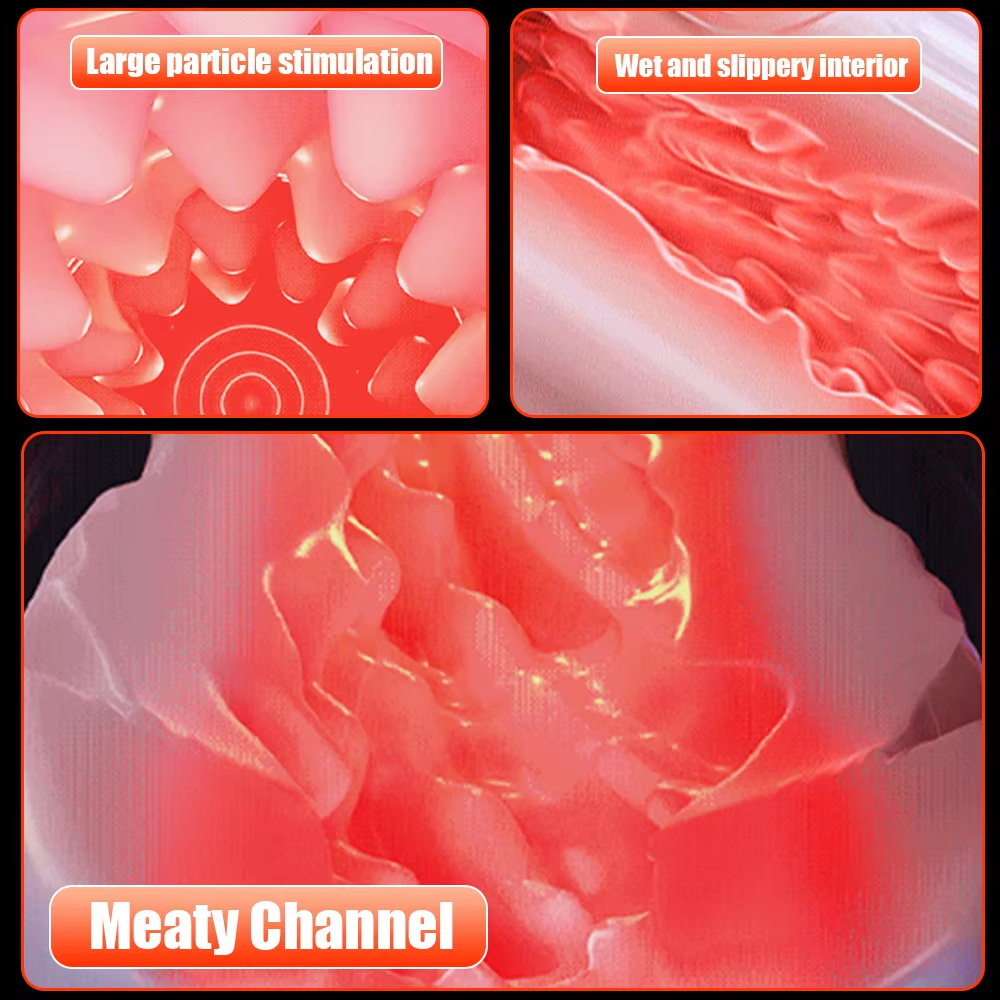 【3D Silikon Vagina Hülle & Weiches TPE-Material】Dieser Blowjob Masturbator hat eine abnehmbar 3D-texturierte Hülle und ist aus superweichem TPE-Material mit großer Flexibilität hergestellt.Er kann an verschiedene Größen angepasst werden.Mehrschichtigen Spiralfalten und die holprigen Partikel im Inneren stimulieren jeden Sinnesnerv,der Taschenmuschi realistisch groß bringt Ihnen mehr Stimulation und Vergnügen.Mastrubrator für Männer real kann auch als Penistrainer Vibratoren verwendet werden