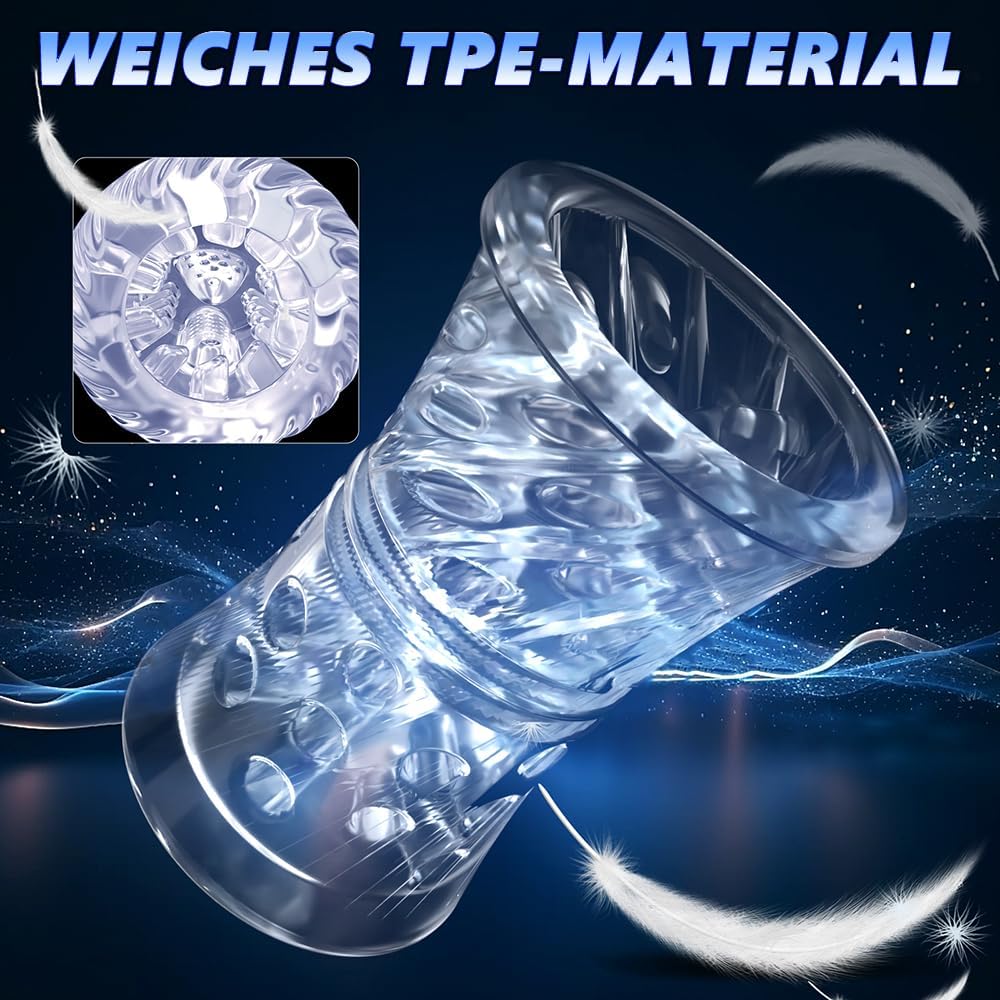 - Hochwertiges Material: Hergestellt aus weichem TPE-Material, geruchlos und langlebig. Die Textur und die größeren Partikel im Inneren des Masturbators simulieren das Innere der Höhle einer echten weiblichen Vagina, die Ihren Penis besser umhüllen und stimulieren kann.