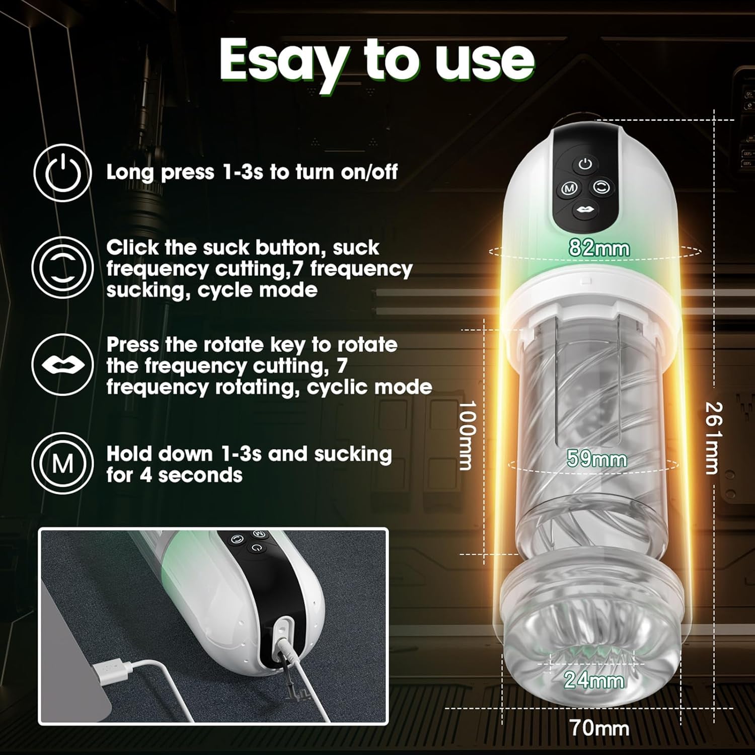[HOCHWERTIGES, SICHERES UND WEICHES TPE-MATERIAL]: Elektrischer männlicher Masturbator aus superdehnbarem 3D-TPE-Material für Vergnügen aller Penisgrößen. Die Hülle dieses Masturbators aus fantastischem Material fühlt sich unglaublich realistisch an. [EINFACH ZU REINIGEN UND ÜBER USB WIEDERAUFLADBAR]: Das vollständig wasserdichte Design erleichtert die Reinigung. USB-Schnellladung, vollständiges Laden in 2 Stunden, Weiterbetrieb für 1 Stunde.