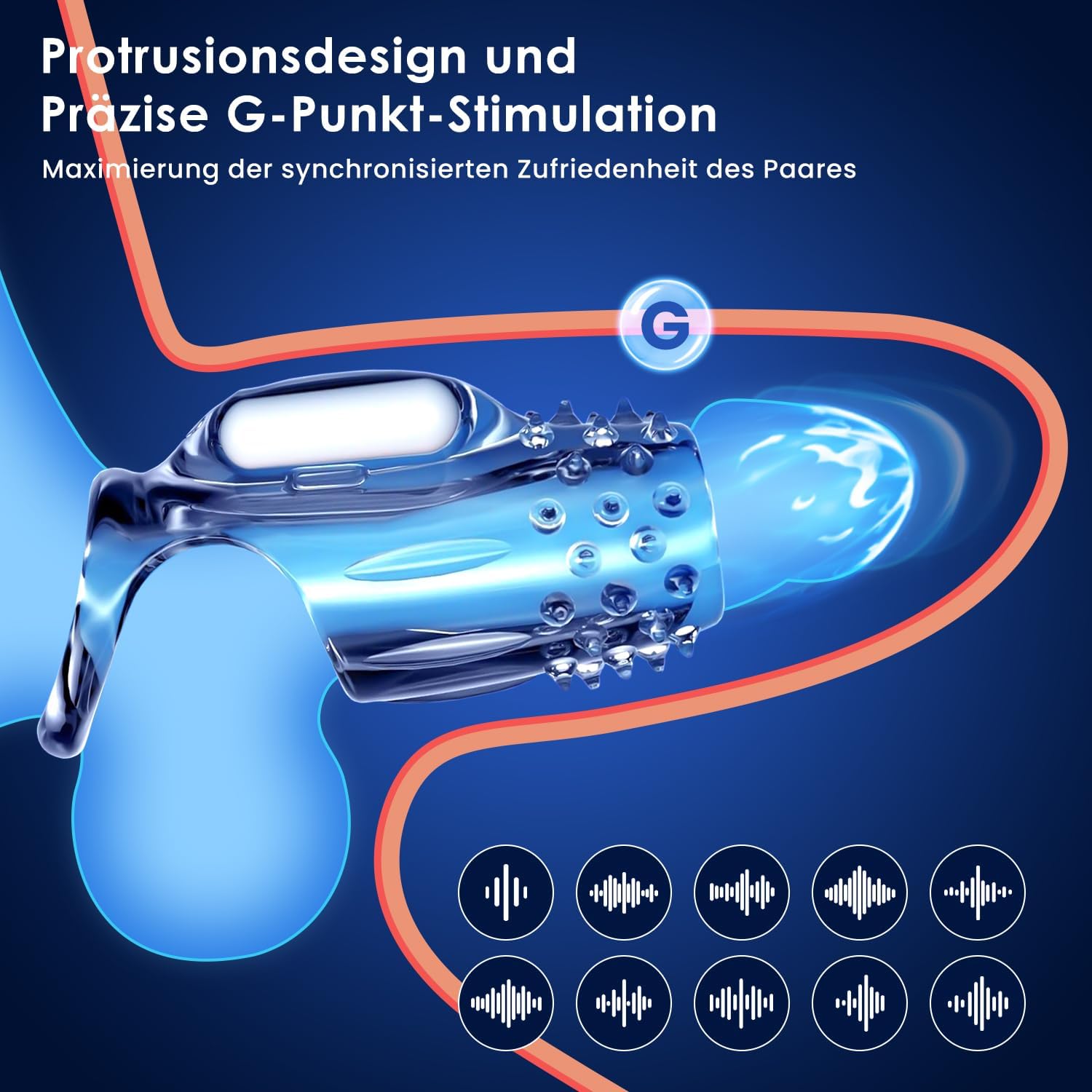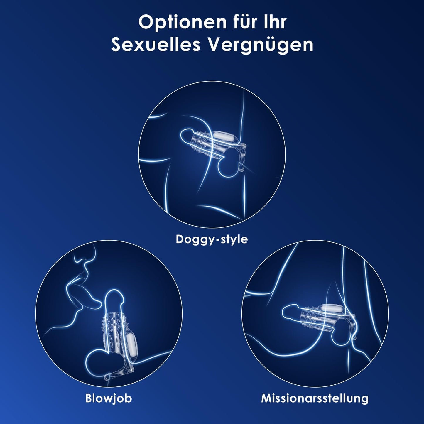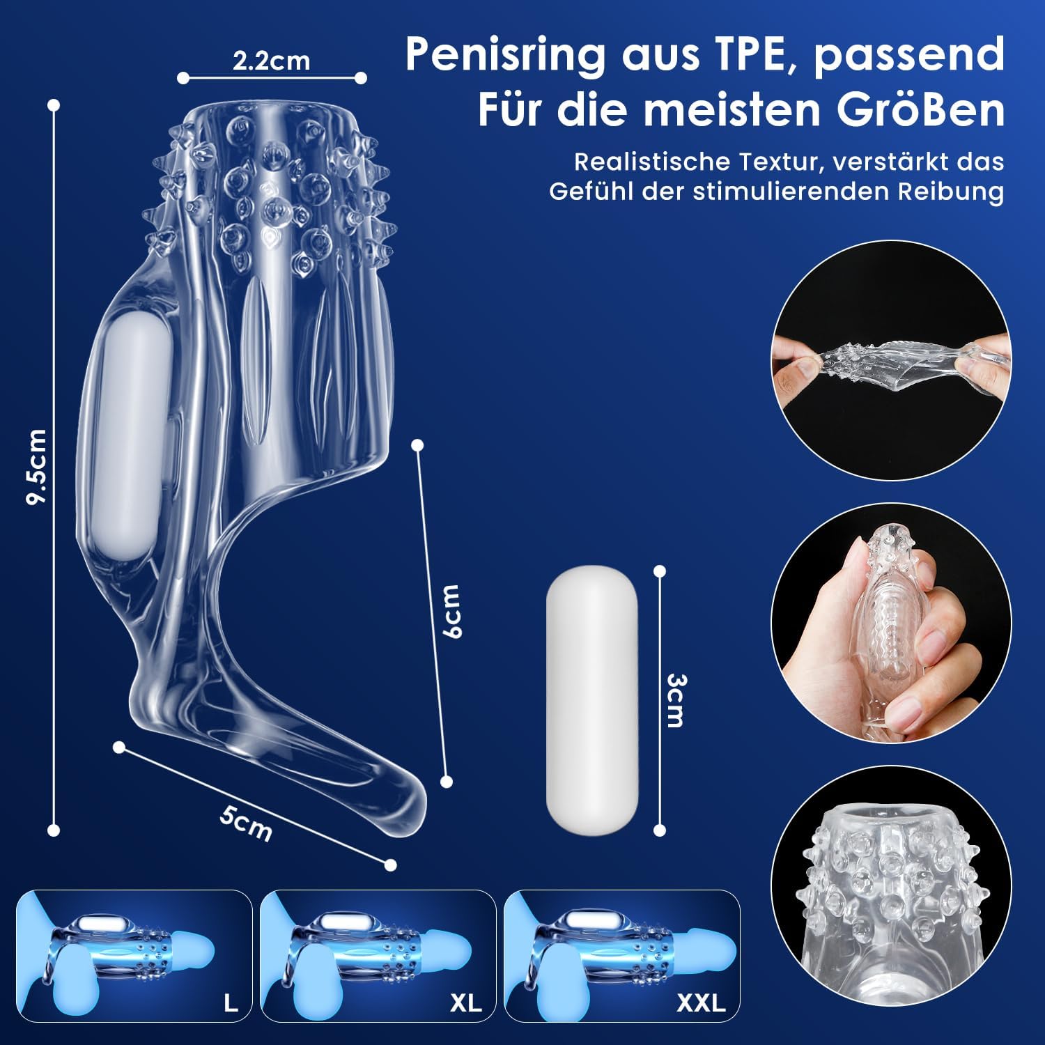 【 Sexspielzeug für Männer & Simultaner Höhepunkt für Paare】Die Penis Vibrator kann er Ihnen zu einer härteren und länger anhaltenden Erektion verhelfen und kann er Ihren Penisumfang vergrößern. Es wickelt sich nahtlos um Ihren Schaft und bleibt auch während des Schubs sicher an seinem Platz. Schalten Sie den Penisvibrator ein, stimuliert er auch schnell Ihren Penis und den G-Punkt, P-Punkt und die Vagina Ihrer Partnerin. Die Vibrationen verhelfen Ihrer Partnerin zu einem schnelleren, stärkeren und synchronisierten Höhepunkt beim Geschlechtsverkehr.