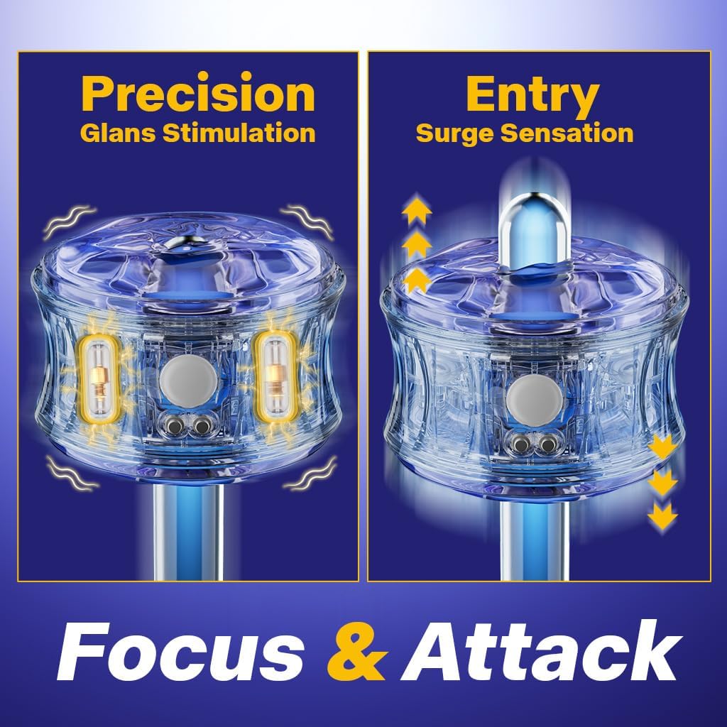 Enge Passform für das Training der Eichelempfindlichkeit – Schlüpfen Sie in dieses Sexspielzeug für Männer und spüren Sie, wie die enge, offene Penishülle jede Kontur umschließt und sofortiges Vergnügen bereitet. Als Masturbator und Eicheltrainer liefert er gezielte Vibrationen, um die Erregung zu steigern und die Ausdauer der Eichel zu verbessern. Erleben Sie „Focus“ für konzentrierte Stimulation der Eichelspitze, „Attack“ für penetrierende Impulse und „Pleasure“ für drehende, auf- und abwärts gerichtete Bewegungen entlang des Schafts – perfekt für stärkere und länger anhaltende Leistung.