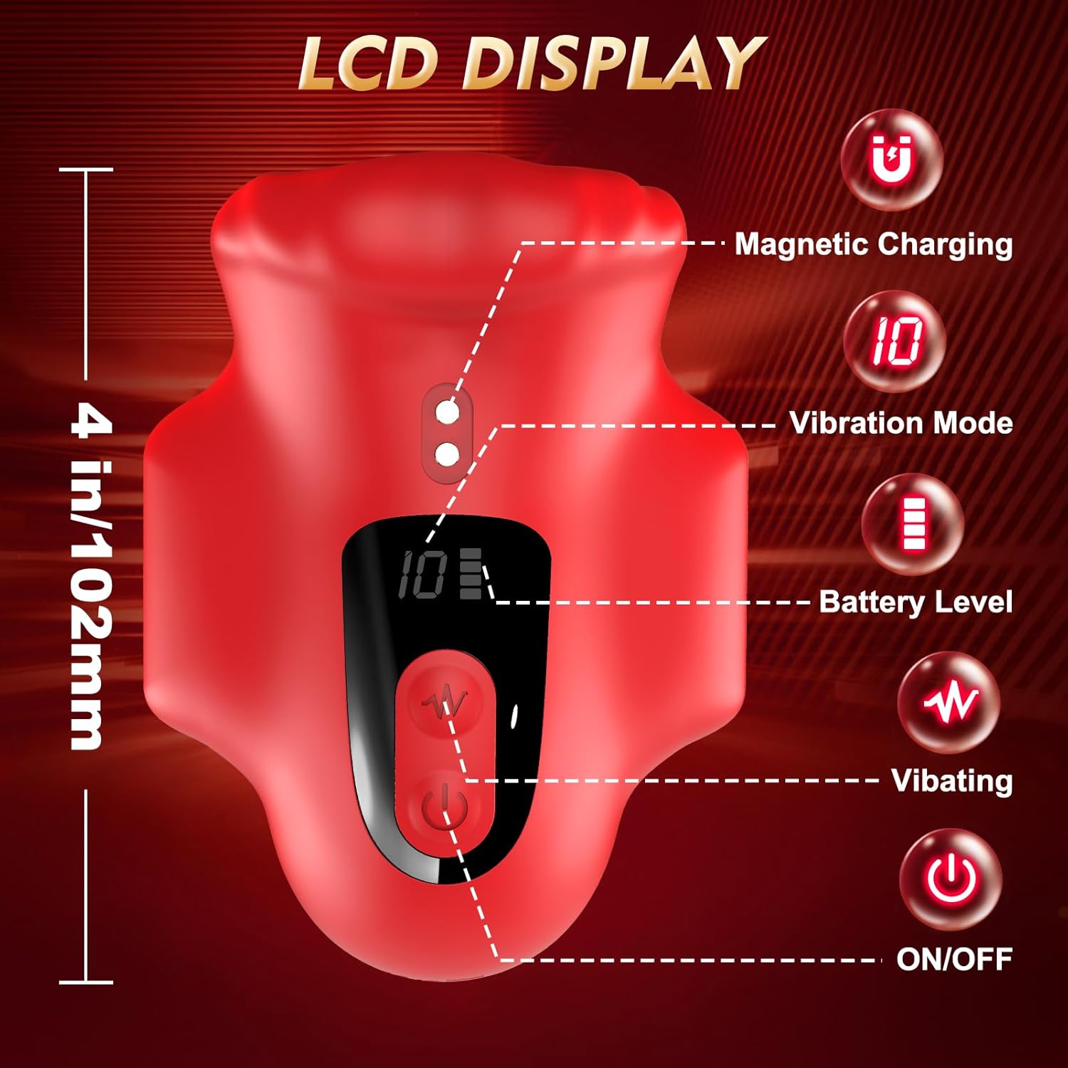 LCD-Digitalanzeige: Dieser Penisvibrator verfügt über ein LCD-Display, das die Vibrationsstufe anzeigt, damit Sie schnell Ihren Lieblingsmodus finden. Außerdem wird der Akkustand angezeigt, sodass Sie jederzeit ungestörten Sex genießen können. Dank IPX6-Wasserschutz können Sie ihn auch unter der Dusche verwenden.