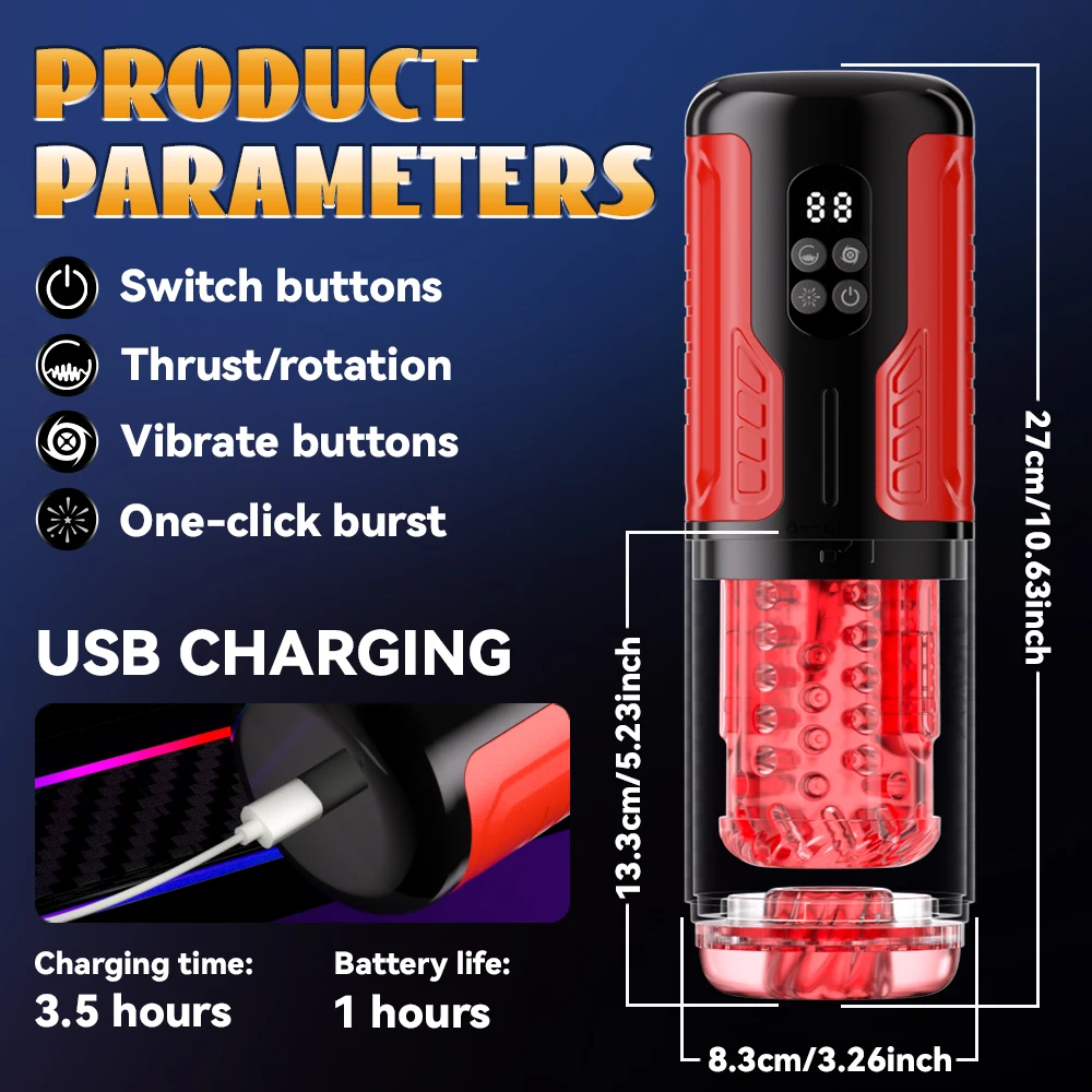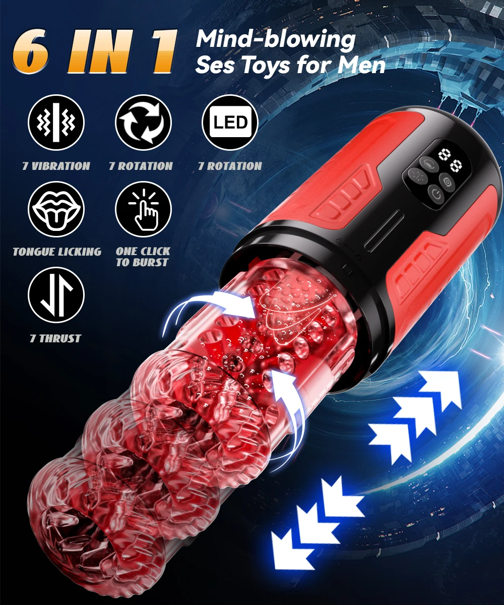 Automatische Schub Masturbator Penis Pumpe mit 7 Frequenz Schub-und Rotations Modi
