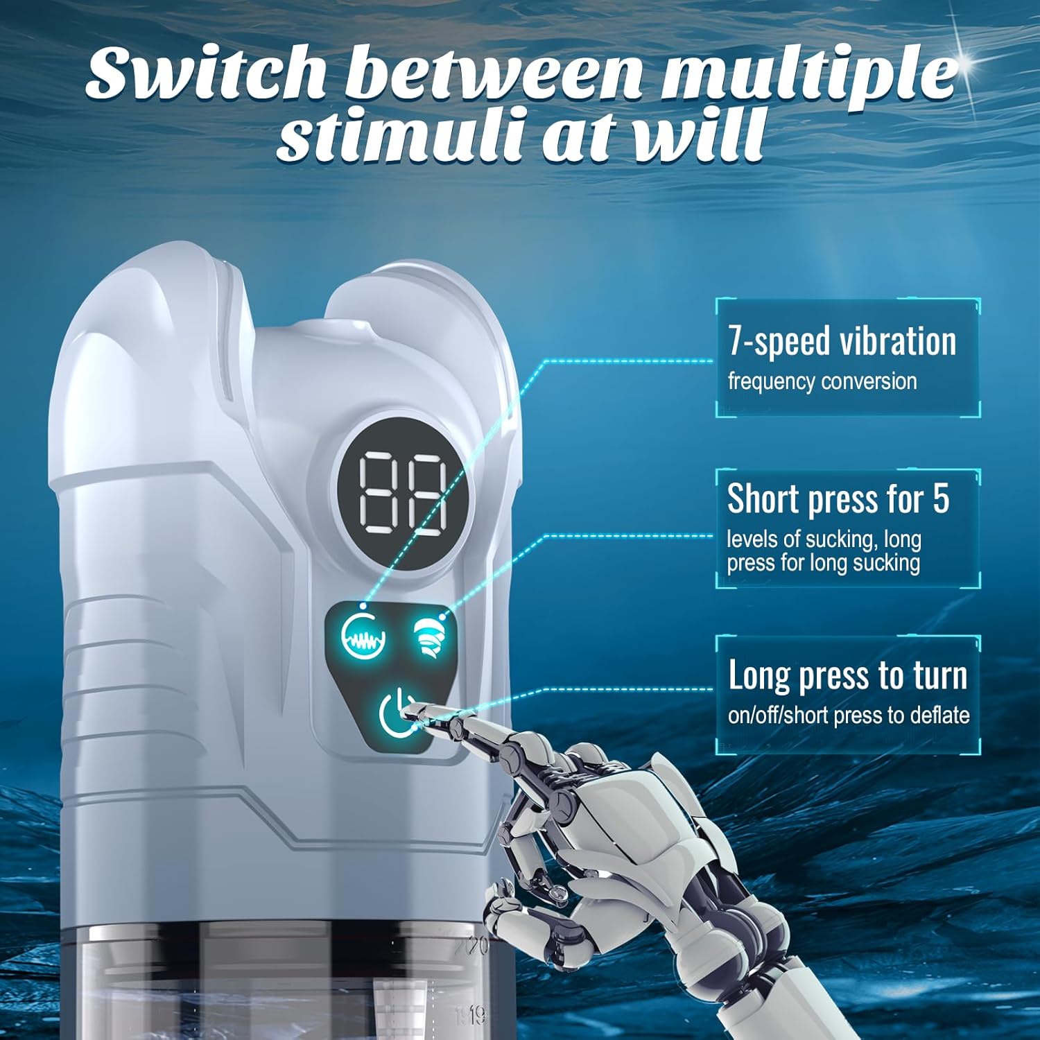 Automatischer Penispumpen Vergrößerungs Masturbator mit 7 Vibrations und 5 Saugmodi