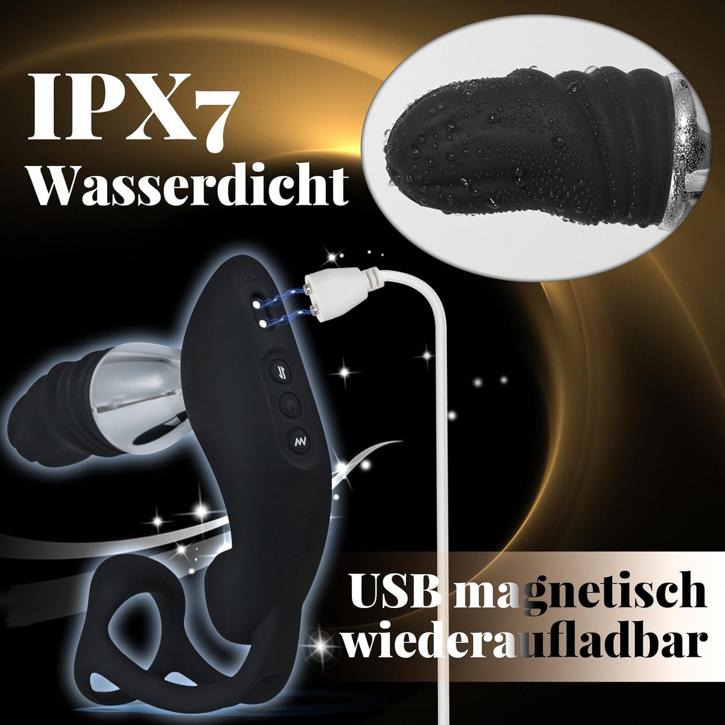 - [USB wiederaufladbar und IPX7 wasserdicht] Dieses männliche Sexspielzeug mit vibrierendem Penisring Analplug wird mit einem USB-Ladekabel geliefert, das einfach vollständig aufzuladen ist und 40 Minuten lang verwendet werden kann, zusätzlich zu dem Elektroschock-Prostatamassagegerät, das 100% wasserdicht ist, Sie können es überall verwenden und sind dennoch leicht zu reinigen
