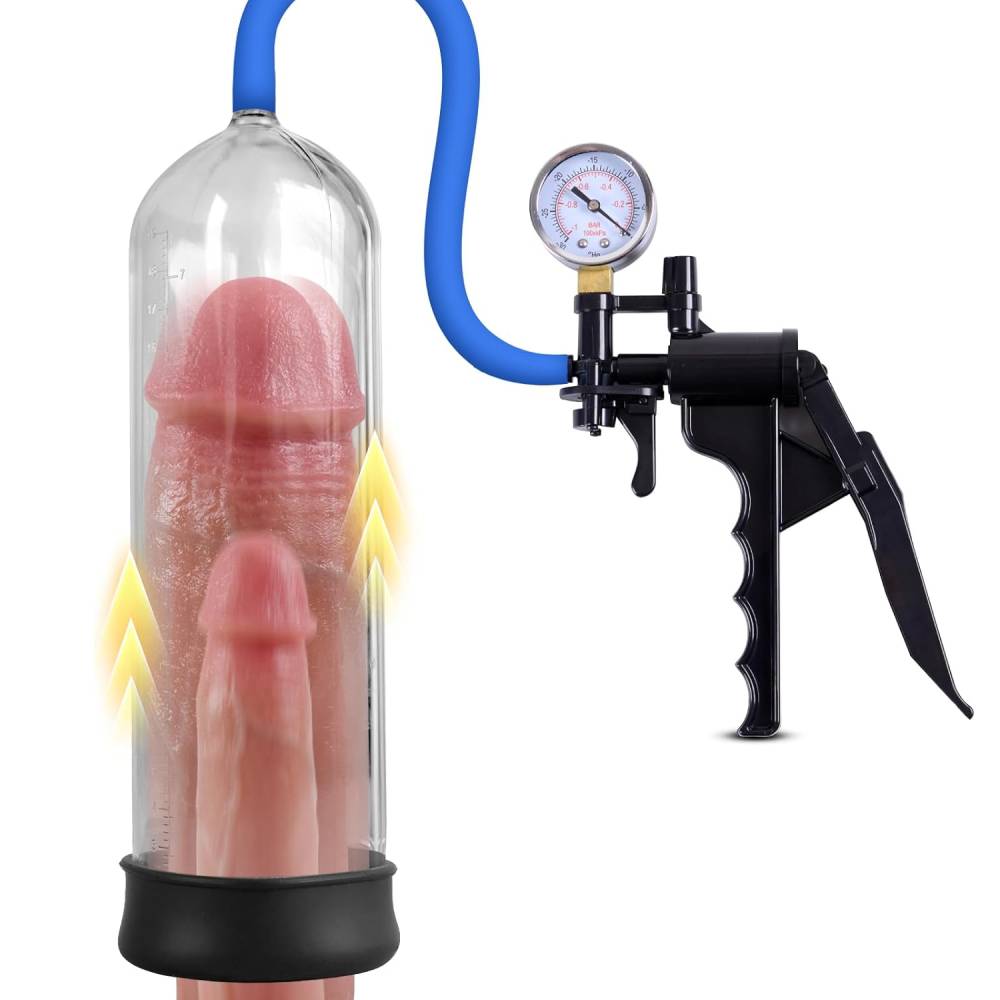 - 【Ergonomische Penispumpe mit Pistolengriff】 Der Advanced Trigger Pump Pistolengriff mit Druckmessgerät und Vakuum-Freigabeventil macht es einfach, Luft aus der Kammer zu drücken. Der transparente Zylinder dieser manuellen Penispumpe verfügt über Messzeichen, damit Sie Ihren Fortschritt verfolgen und das Druckmessgerät im Auge behalten können, um Ihr bevorzugtes Saugniveau zu finden.
