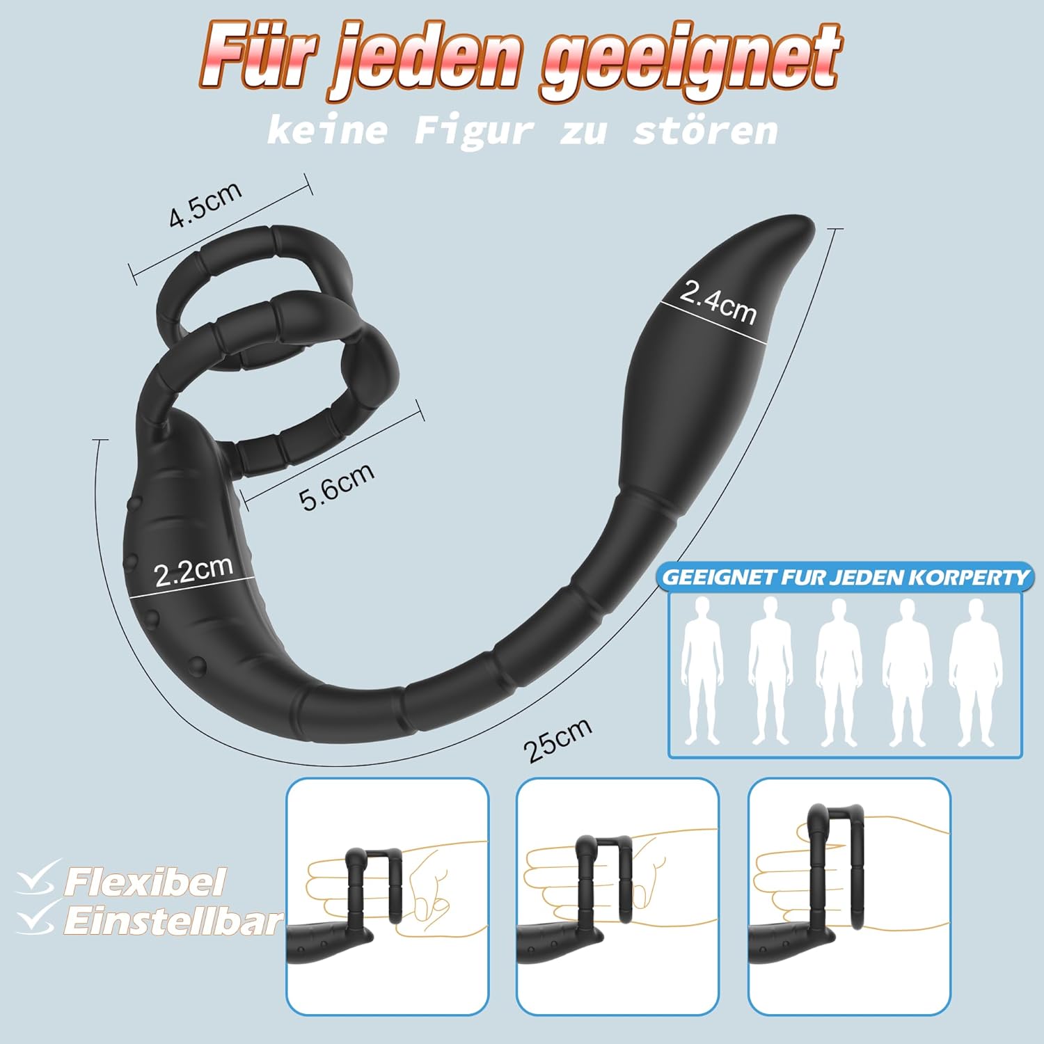 • 【Neue Skorpionform - Verlängerte Penisring Analplug】Sex spielzeug für die Männer ist innovativ im Aussehen unter der Prämisse der ergonomischen Design. Die Skorpion-Optik von Vibratorensets für männer bringt Ihnen eine andere sensorische Stimulation. Der skorpionschwanzähnliche Analplug ist von dünn bis dick, sehr leicht in den Körper einzudringen und gibt Ihnen ein starkes Gefühl der Stimulation & Befriedigung. Die Gesamtlänge von Penis Vibrator ist 25cm, und der Analplug Teil ist 2-3cm länger als die gewöhnlichen Sex Toy, keine Figur zu stören