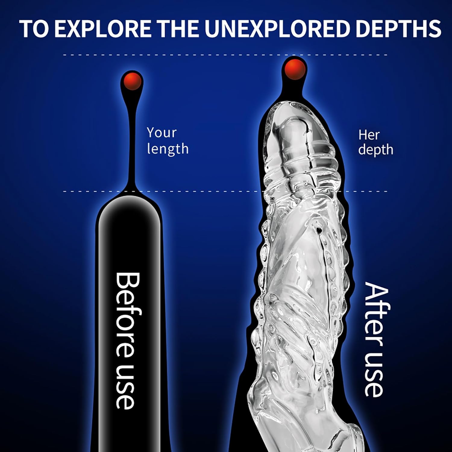 - Komfortables Material – Hergestellt aus flexiblem TPE, verlängert die Penishülle den Penis um bis zu 7cm, ist hautfreundlich, elastisch, wiederverwendbar und leicht zu reinigen.
