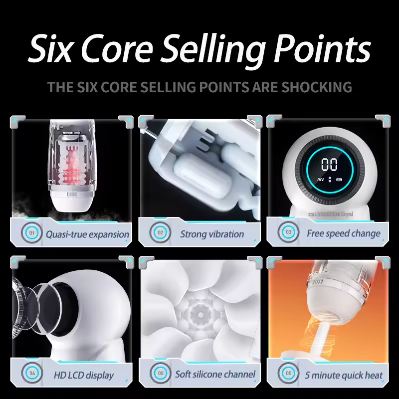 3-in-1-Multifunktions-Elektromasturbator mit 10 Vibrationen, 10 Geschwindigkeiten und 4 Teleskopfunktionen.