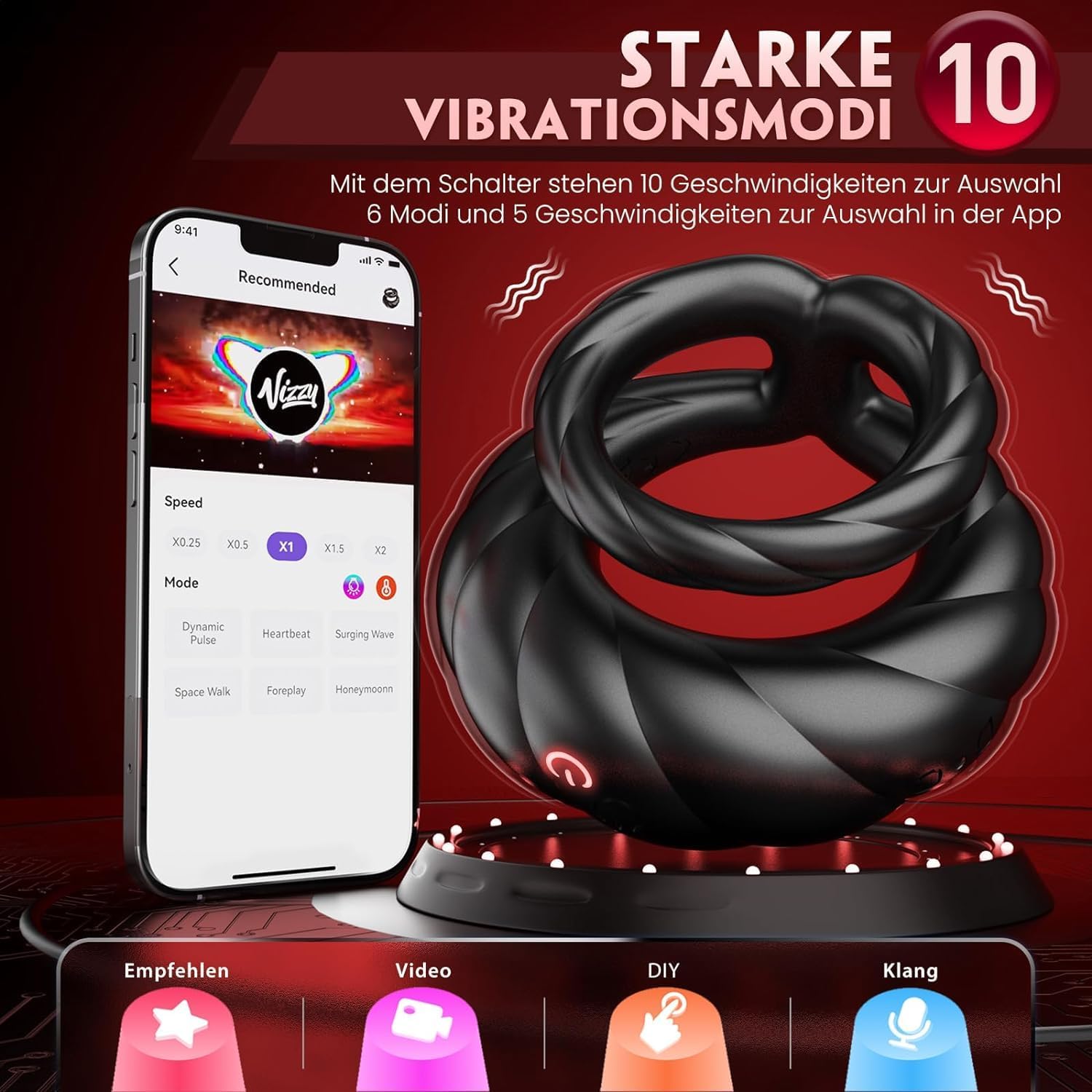 【10 Leistungsstarke Vibrationsmodi Penisring】Dieser vibratorstarb männer sexual toys verfügt über 10 Vibrationsmodi mit unterschiedlichen Geschwindigkeiten. Passen Sie die Geschwindigkeit des penies.ring sex spielzeug für paare set an das trainieren Sie die Empfindlichkeit, um die Ausdauer zu erhöhen. Ein Ring des toys mann sex toys wird verwendet, um den Penis zu arretieren, und der andere Cock ring Penisring mit fernbedienung mann wird verwendet um den Hodensack zu verschließen.