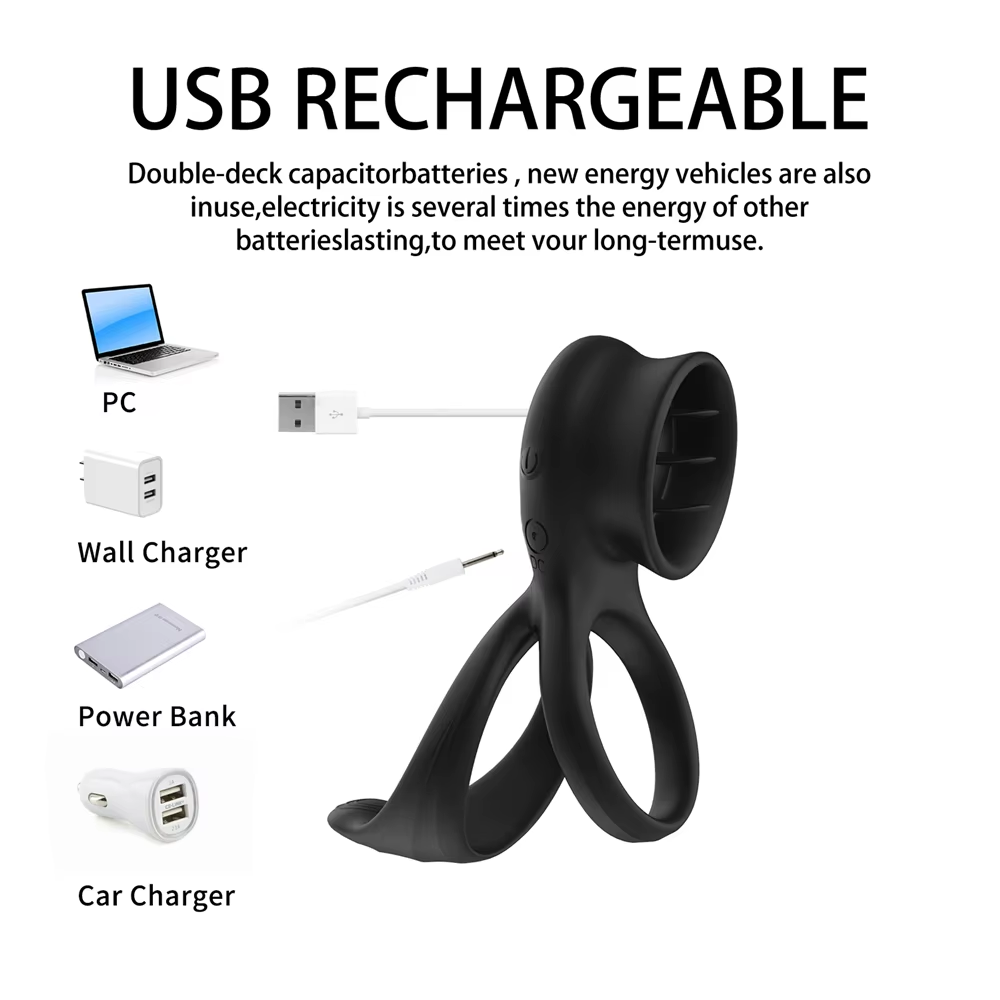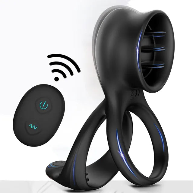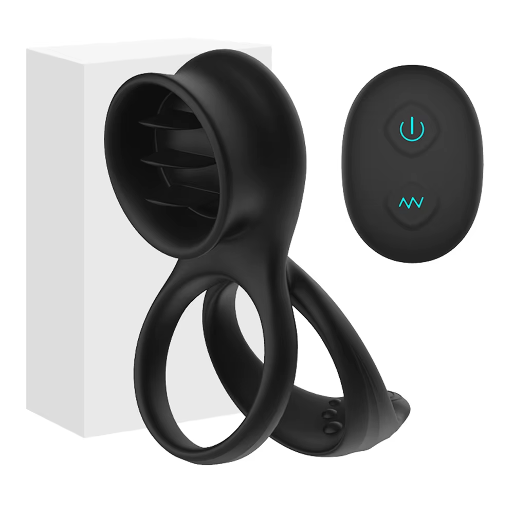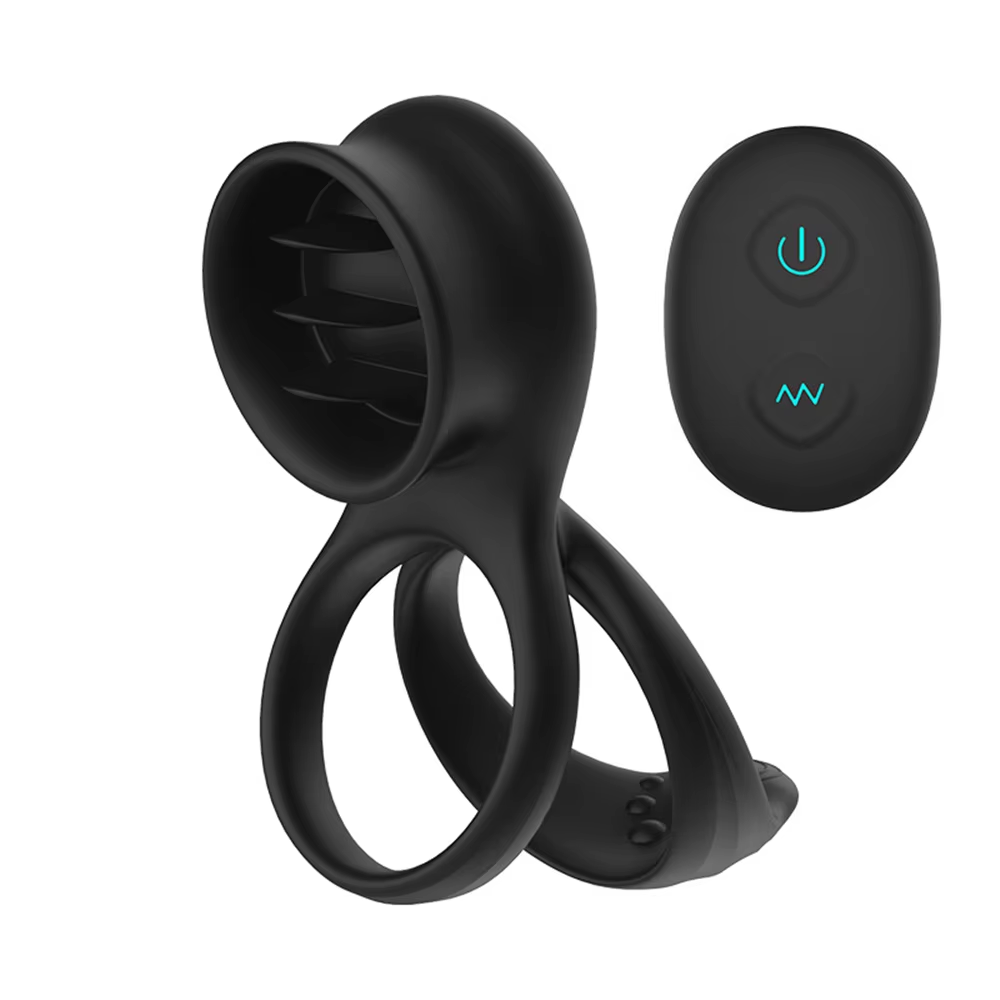 Durch die Kombination des ergonomischen Designs sind der Penisringvibrator, der Klitorisvibrator mit Zungenleckfunktion und der G-Punkt-Vibrator in einem vereint.