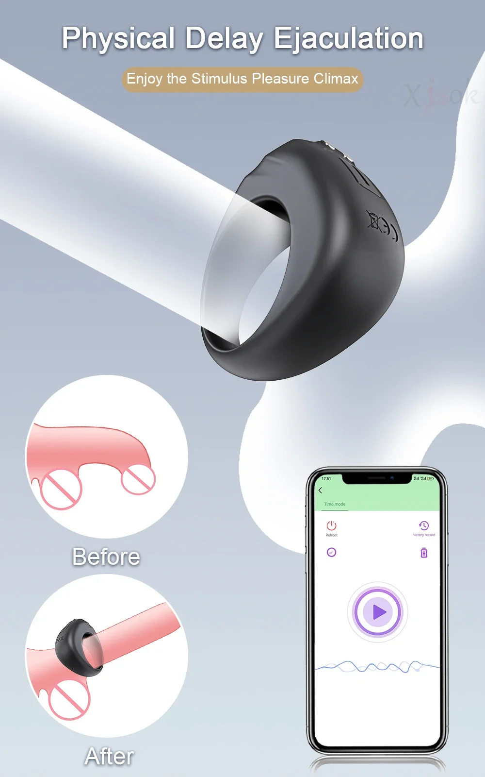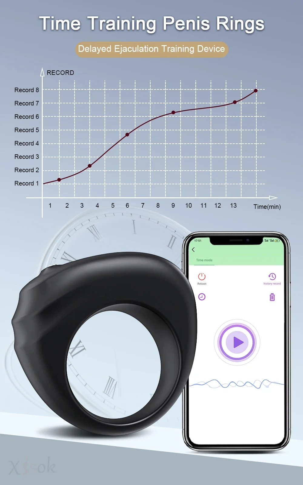 【Neuartige Zählfunktion】 Dieser Penisring zum Zählen beginnt nach dem Binden der App zu arbeiten. Er zeichnet die Anzahl des Stoßens und die Zeit auf, die Sie verbringen.Sie können Ihr Niveau in diesem Spiel kennen und diese Spielaufzeichnung speichern und dann ein Ziel für sich setzen, die vorherige Aufzeichnung ständig zu übertreffen und sich langlebiger zu machen.